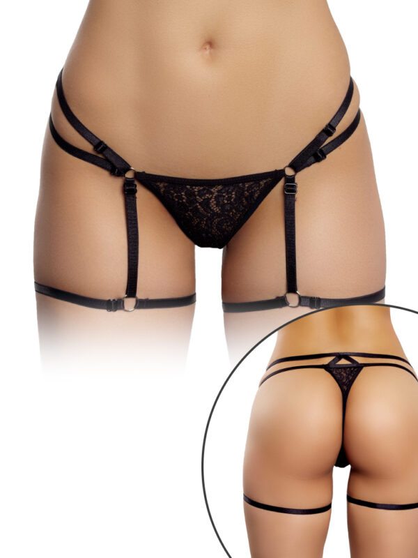 Liguero de encaje delicado con tiras ajustables en las piernas, que combina sensualidad y comodidad. Perfecto para completar tu look con un toque elegante y provocador.