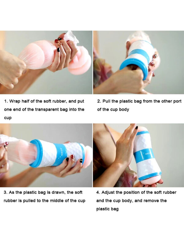 * Aplica unas gotas de lubricante a base de agua dentro del masturbador, introduce el pene suavemente y empieza a moverlo de arriba abajo.