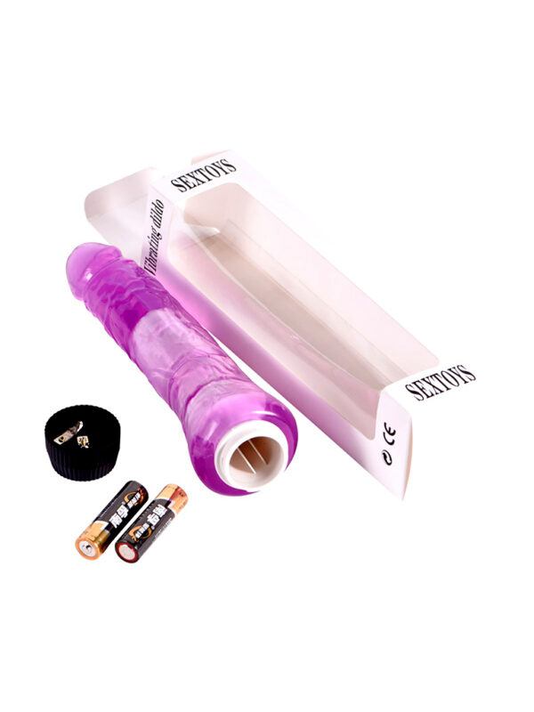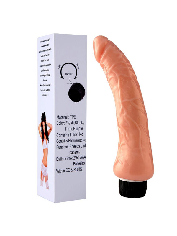 Vibrador de silicona suave, con venas que le dan una textura realista.