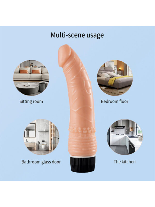 vibrador muy suave y realista es curvo para estimular poderosamente el Punto G femenino se adapta a la forma natural del cuerpo. Ideal para estimular los puntos internos más sensibles. es un vibrador con multivelocidades las cuales tu controlas desde su base.